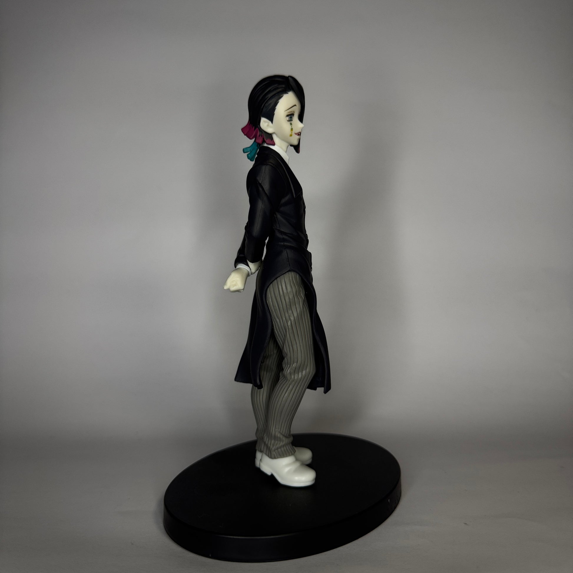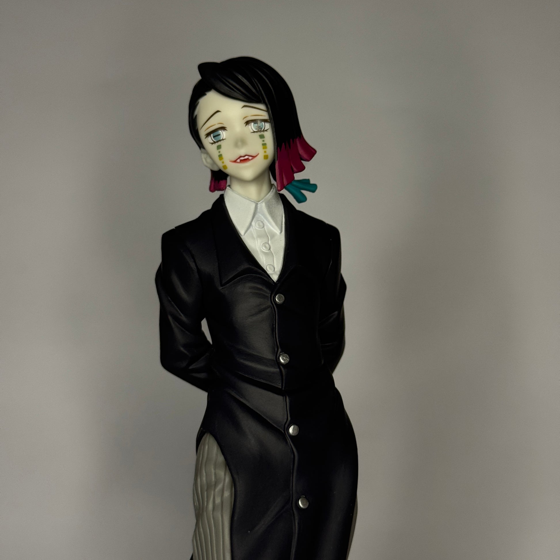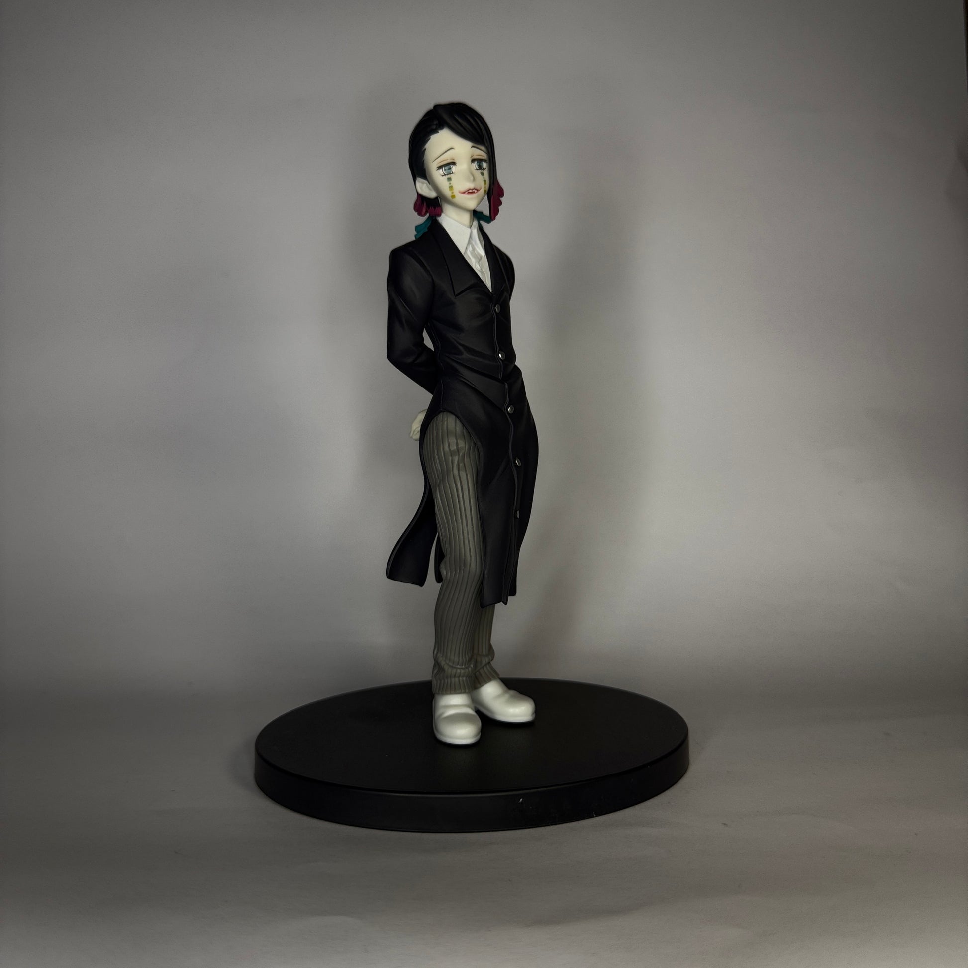Traga o charme sinistro de um dos vilões mais marcantes de Kimetsu no Yaiba para sua coleção com esta figura premium do Enmu! Com aproximadamente 17 cm de altura, a peça da Bandai retrata o personagem em seu elegante traje escuro com camisa branca, cabelo estilizado em tons de rosa e azul e expressão enigmática. A pintura de alta definição valoriza cada detalhe do casaco, botões e pose formal do demônio da Lua Inferior. Fabricada em PVC resistente e apoiada em base circular preta, é perfeita para fãs e colecionadores que valorizam peças únicas e de alta qualidade. Características